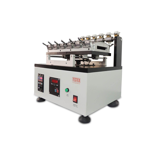 Tester za ocenu postojanosti trljanja (Gakushin) za JIS standarde se koristi za procenu otpornosti materijala na trljanje. Ova jedinica je sto sa šest stanica, koja uključuje stezaljke za pričvršćivanje uzorka na pokretnu platformu i stezaljke za pričvršćivanje materijala za trljanje sa dodatnim opterećenjem.