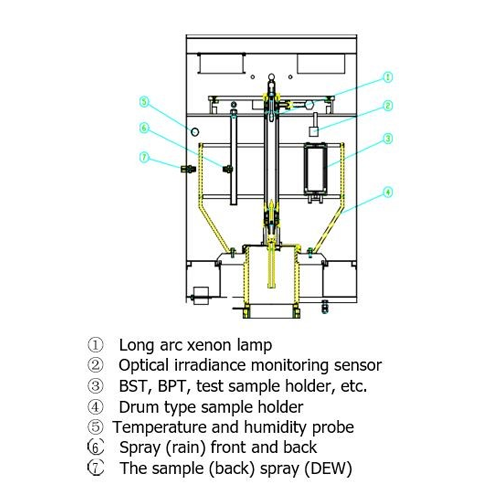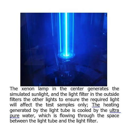 - Opremljen vodenom hlađenom dugačkom luk-ksenon lampom od 4500 W, koja pruža simulaciju spektra dnevne svetlosti.
